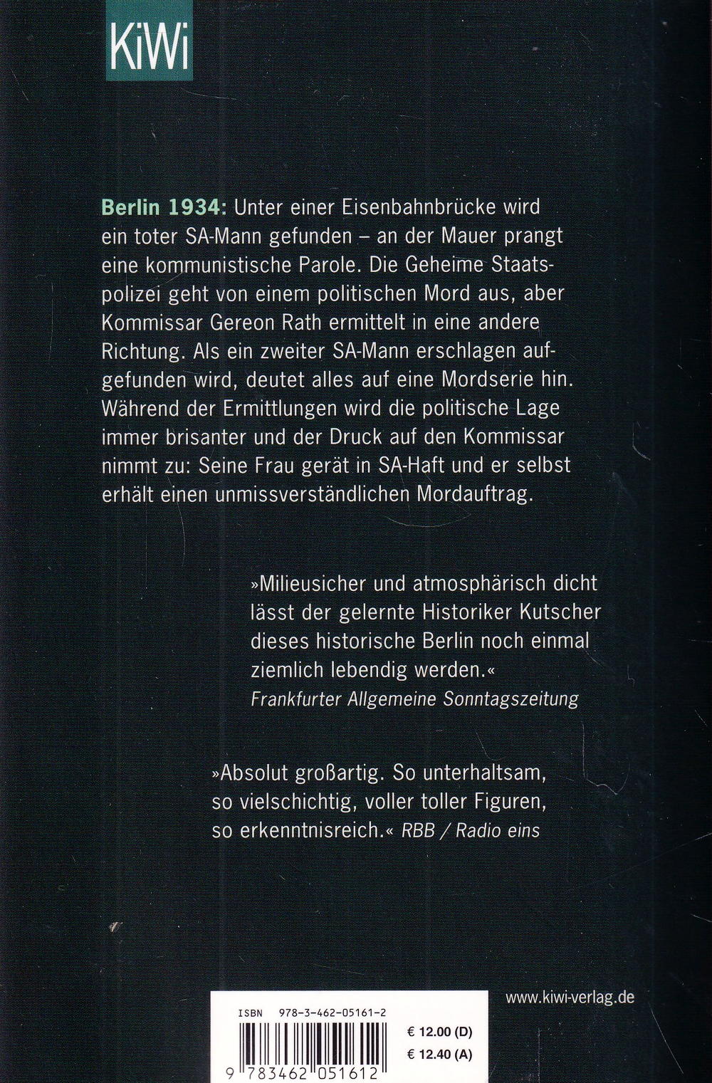 Gereon Rath legt sich im sechsten Fall der Kriminalserie von Volker Kutscher mit einem SA-Sturm und der Berliner Unterwelt an. Berlin 1934: Unter der Eisenbahnbrücke an der Liesenstrasse wird ein toter SA-Mann gefunden, über dem eine kommunistische Parole prangt. Am Tatort trifft Kommissar Gereon Rath auf seinen früheren Kollegen Reinhold Gräf, der inzwischen für die Geheime Staatspolizei arbeitet. Während Gräf von einem politischen Mord ausgeht, ermittelt Rath in eine andere Richtung. Er entdeckt Verbindungen zu einem zerschlagenen Ringverein, der seine kriminellen Aktivitäten als SA getarnt fortsetzt. Als ein zweiter SA-Mann erschlagen aufgefunden wird, deutet alles auf eine Mordserie hin. Während der Ermittlungen wird die politische Lage immer brisanter: Gereon Raths Frau gerät in SA-Haft und der Kommissar wird in einen Strudel sich überschlagender Ereignisse gezogen, an deren Ende er selbst unter Druck gerät: Er soll einen Mord ausführen! Volker Kutscher liefert atemlose Spannung und das packende Porträt politisch höchst unruhiger Zeiten.