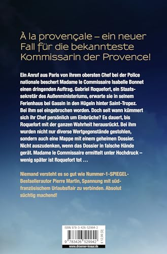 Pierre Martin liefert mit seinen Wohlfühlkrimis aus der Provence die perfekte Urlaubslektüre: Spannende Fälle, ein Schuss Humor und liebenswerte Figuren zeichnen seine Krimi-Reihe um die Kommissarin Isabelle Bonnet aus. Die Krimi-Bestseller aus Südfrankreich sind in folgender Reihenfolge erschienen: Madame le Commissaire und der verschwundene Engländer Madame le Commissaire und die späte Rache Madame le Commissaire und der Tod des Polizeichefs Madame le Commissaire und das geheimnisvolle Bild Madame le Commissaire und die tote Nonne Madame le Commissaire und der tote Liebhaber Madame le Commissaire und die Frau ohne Gedächtnis Madame le Commissaire und die panische Diva Madame le Commissaire und die Villa der Frauen Madame le Commissaire und die Mauer des Schweigens Madame le Commissaire und das geheime Dossier