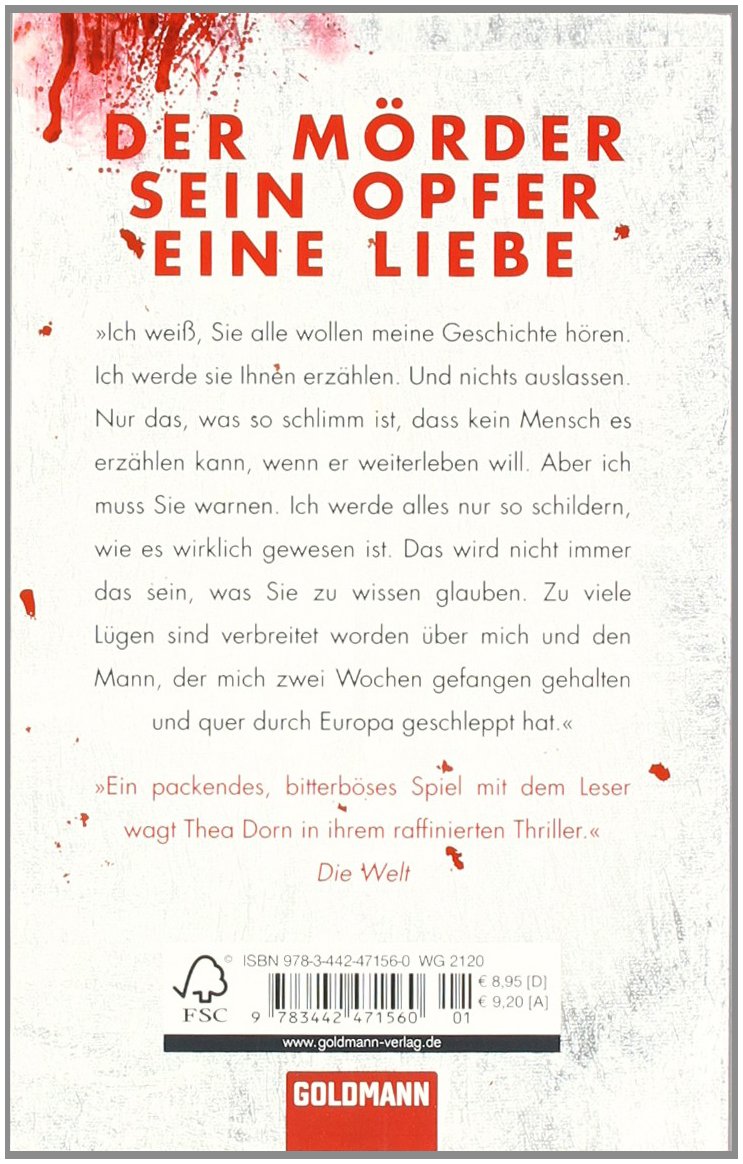 »Ich weiß, Sie alle wollen meine Geschichte hören. Ich werde sie Ihnen erzählen. Und nichts auslassen. Nur das, was so schlimm ist, dass kein Mensch es erzählen kann, wenn er weiterleben will. Aber ich muss Sie warnen. Ich werde alles nur so schildern, wie es wirklich gewesen ist. Das wird nicht immer das sein, was Sie zu wissen glauben. Zu viele Lügen sind verbreitet worden über mich und den Mann, der mich zwei Wochen gefangen gehalten und quer durch Europa geschleppt hat.«