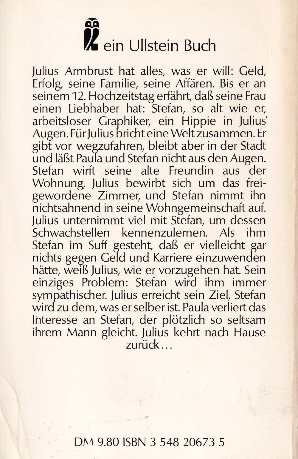 Julius Armbrust hat alles, was er will: Geld, Erfolg, seine Familie, seine Affären. Bis er an seinem 12. Hochzeitstag erfährt, dass seine Frau einen Liebhaber hat: Stefan, so alt wie er, arbeitsloser Graphiker, ein Hippie in Julius Augen. Für Julius bricht eine Welt zusammen. Er gibt vor wegzufahren, bleibt aber in der Stadt und lässt Paula und Stefan nicht aus den Augen.