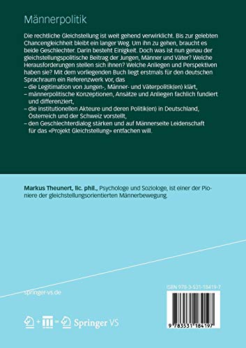 Die rechtliche Gleichstellung ist weit gehend verwirklicht. Bis zur gelebten Chancengleichheit bleibt ein langer Weg. Um ihn zu gehen, braucht es beide Geschlechter. Darin besteht Einigkeit. Doch was ist nun genau der gleichstellungspolitische Beitrag der Jungen, Männer und Väter? Welche Herausforderungen stellen sich ihnen? Welche Anliegen und Perspektiven haben sie? Mit dem vorliegenden Buch liegt erstmals für den deutschen Sprachraum ein Referenzwerk vor, das die Legitimation von Jungen-, Männer- und Väterpolitik(en) klärt; männerpolitische Konzeptionen, Ansätze und Anliegen fachlich fundiert und differenziert; die institutionellen Akteure und deren Politik(en) in Deutschland, Österreich und der Schweiz vorstellt; den Geschlechterdialog stärken und auf Männerseite Leidenschaft für das «Projekt Gleichstellung» entfachen will.