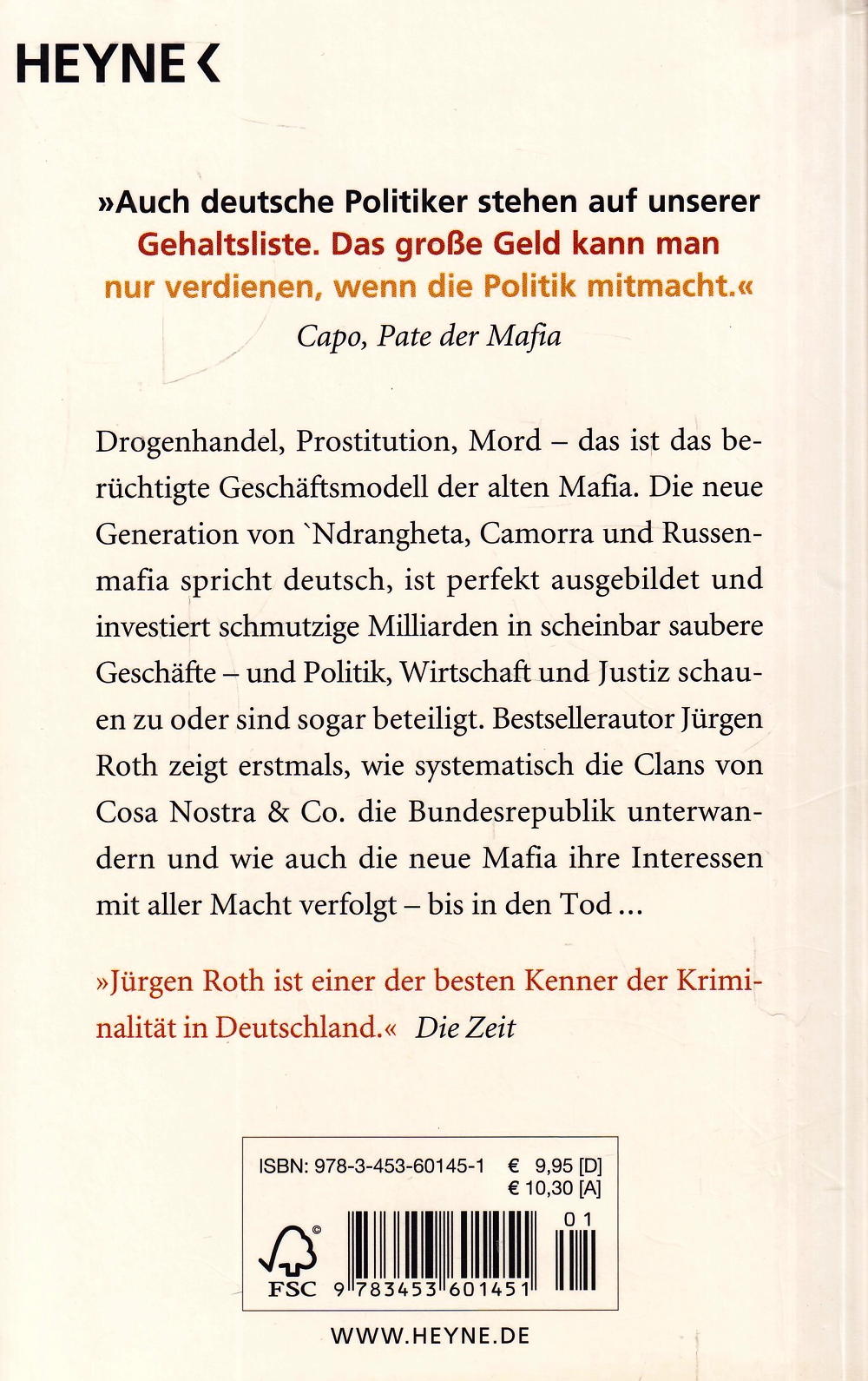 Erstmals zeigt Bestsellerautor Jürgen Roth, wie die Mafia-Clans von Cosa Nostra & Co. systematisch die Bundesrepublik unterwandern. Die neue Generation von ’Ndrangheta, Camorra und Russenmafia spricht deutsch, ist perfekt ausgebildet und investiert schmutzige Milliarden in scheinbar saubere Geschäfte – und weite Teile von Politik, Wirtschaft und Justiz schauen zu oder sind sogar beteiligt. Doch auch die neue Mafia verfolgt ihre Interessen mit aller Macht – bis in den Tod ...
