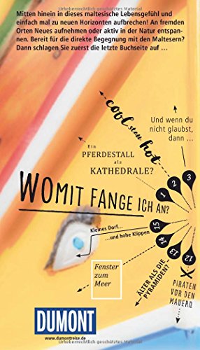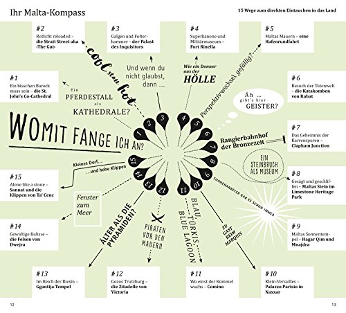 In ihrem Mini-Staat im Mittelmeer sprechen die Malteser eine ganz einzigartige Sprache – und fliessend Englisch, war die Insel doch lange das Headquarter der britischen Mittelmeerflotte. Mit den 15 »Direkt-Kapiteln« des Reiseführers von Hans E. Latzke können Sie sich zwanglos unter die Malteser mischen, direkt in das Lebensgefühl auf der Mittelmeerinsel eintauchen, aktiv in der Natur entspannen und die Highlights kennenlernen: die Tempel der Megalithkultur und prächtige Barockkunst, die Hafenstadt Valletta und die Nachbarinseln Gozo und Comino, Katakomben und Karrenspuren, die alte Hauptstadt Mdina, Festungen und Paläste. In eigenen Kapiteln erfahren Sie, wo es sich in fremden Betten gut schläft, wo Sie glücklich satt werden, wohin die Malteser zum Stöbern und Entdecken gehen und wohin es sie zieht, wenn die Nacht beginnt. Mit den Übersichtskarten, genauen Stadtplänen und dem separaten grossen Faltplan können Sie nach Lust und Laune Malta erkunden.