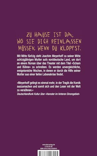 Mit Mitte fünfzig zieht der Erzähler zu seiner Mitte achtzigjährigen Mutter aufs Land, um dort an einem Roman über das Theater mit dem Titel »Scham und Bühne« zu schreiben. Es werden unvergleichliche, ereignisreiche Wochen, in denen er durch die Hilfe seiner Mutter aus einer tiefen Lebenskrise findet. Nachdem er in Wien von einem Schlaganfall aus der Bahn geworfen wurde, hofft Joachim Meyerhoff, durch einen Neuanfang in Berlin wieder Fuss zu fassen. Doch alles kommt anders als gedacht. Die neue Stadt zerrt an den Nerven und die künstlerische Arbeit als Schriftsteller und Schauspieler fällt ihm von Tag zu Tag schwerer. Auf der Geburtstagsfeier seines kleinen Sohnes ereignet sich ein Zwischenfall, der keinen Zweifel daran lässt, dass es so nicht weitergehen kann. Der Erzähler verlässt Berlin und zieht zu seiner Mutter aufs Land, die auf einem herrlichen Grundstück unweit vom Meer ein sehr selbstbestimmtes Leben führt. Mutter und Sohn sind sich immer schon sehr nah gewesen, aber diese gemeinsamen Wochen werden zu einer besonderen Zeit. Der Sohn klinkt sich ein in den Tagesablauf der Mutter, beginnt seinen Theaterroman und andere Geschichten zu schreiben und findet allmählich heraus aus Zorn und Nervosität, die ihn sein ganzes Leben begleitet haben.