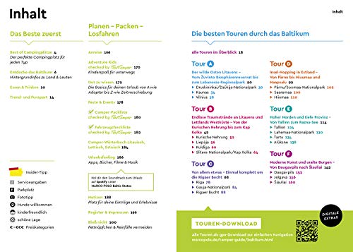 Für die Reise- und Routenplanung findest du alles Notwendige in deinem MARCO POLO Camper Guide: Perfekte Orientierung mit vielen Überblickskarten Nie mehr den Weg suchen: Touren-Download in Form eines gpx-tracks zur einfachen Navigation Rundum- Sorglos-Paket: Wissenswertes zum Reiseziel wie das Freistehen, Anreiseinfos inkl. Fährverbindung, Camper-Wörterbuch Litauisch/Lettisch/Estnisch, Camper-Packliste sowie Fahrzeugcheckliste