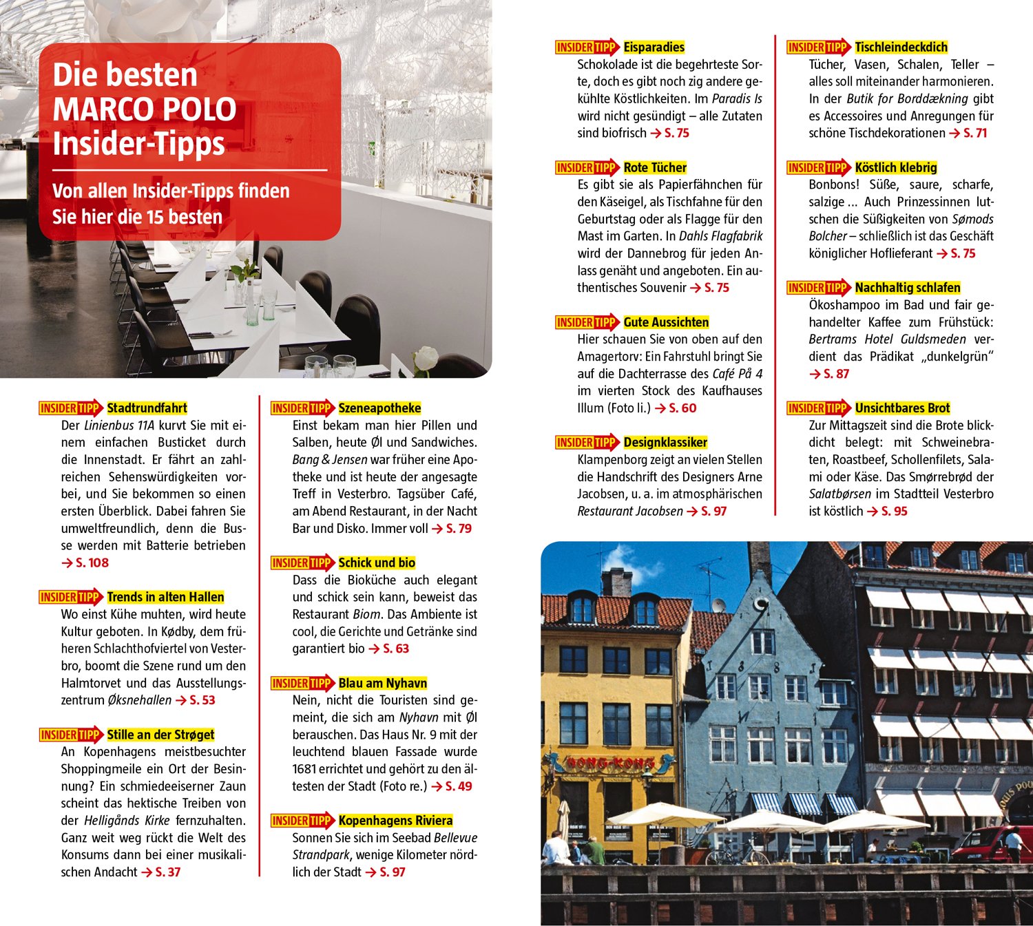 Erleben Sie mit MARCO POLO die "hyggelige" dänische Hauptstadt intensiv vom Frühstück bis zum Nightcap. Mit dem MARCO POLO Reiseführer kommen Sie sofort in Kopenhagen an und wissen garantiert, "wohin zuerst". Erfahren Sie, welche Highlights Sie neben dem Tivoli und dem Schloss Amalienborg nicht verpassen dürfen, warum es Kopenhagens Kunstszene ausgerechnet in eine ehemalige Viehauktionshalle zieht und dass dank 300 km gut ausgebauter Radwege und einer futuristischen, führerlosen Metro selbst die Fortbewegung vor Ort zum Reisegenuss wird.