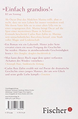 Carlos Ruiz Zafón hat drei phänomenale Weltbestseller geschaffen – ›Der Schatten des Windes‹, ›Das Spiel des Engels‹ und nun endlich auf Deutsch: ›Marina‹. »Wir alle haben im Dachgeschoss der Seele ein Geheimnis unter Verschluss. Das hier ist das meine. « So beginnt Óscar Drai seine Erzählung. Der junge Held des Romans sehnt sich danach, am Leben Barcelonas teilzuhaben, und streift am liebsten durch die verwunschenen Villenviertel der Stadt. Eines Tages trifft er auf ein faszinierendes Mädchen. Sie heisst Marina, und sie wird sein Leben für immer verändern. Gemeinsam werden die beiden in das düstere Geheimnis um den ehemals reichsten Mann Barcelonas gesogen. Schmerz und Trauer, Wut und Grössenwahn reissen sie mit sich, eine höllische Verbindung von vernichtender Kraft. Aber auch Marina umgibt ein Geheimnis. Als Óscar schliesslich dahinterkommt, ist es das jähe Ende seiner Jugend. In ›Marina‹ beschwört Carlos Ruiz Zafón erstmals sein unnachahmliches Barcelona herauf, eine Stadt voller Magie und Leidenschaft, und erzählt in unvergleichlicher Weise die dramatische Geschichte eines jungen Mannes, der um sein Glück und seine grosse Liebe kämpft.