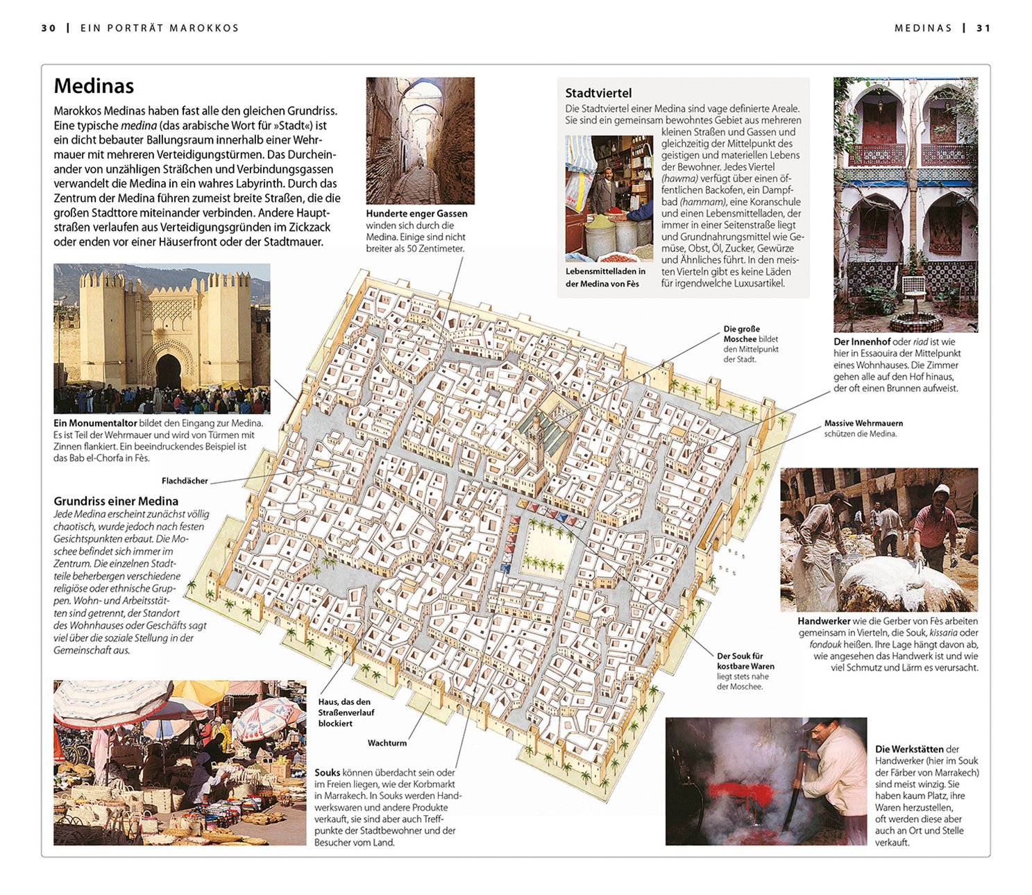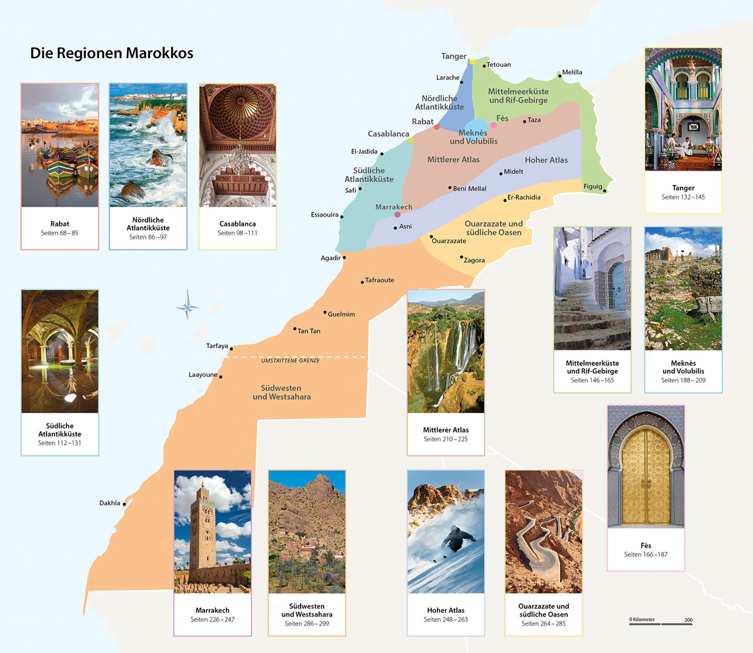 Die pulsierende Metropole Casablanca zeigt wie wohl keine andere Stadt Marokkos, wie Tradition und Moderne in einer Stadt zusammenkommen. Beeindruckend ist auch Fès, die als die geistige und religiöse Hauptstadt des Landes gilt. Der Vis-à-Vis Marokko bietet neben wertvollen Stadtporträts noch vieles mehr: Mit dem Reiseführer geht es u.a. zur ausserordentlich reizvollen südlichen Atlantikküste, wo sich zahlreiche sehenswerte Festungsstädte, eine atemberaubende Küstenlandschaft sowie wunderschöne Badestrände finden.