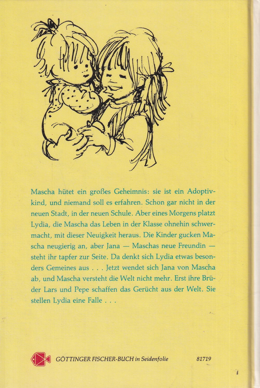 Mascha hütet ein grosses Geheimnis: sie ist ein Adoptivkind, und niemand soll es erfahren. Schon gar nicht in der neuen Stadt, in der neuen Schule. Aber eines Morgens platzt Lydia, die Mascha das Leben in der Klasse ohnehin schwermacht, mit dieser Neuigkeit heraus. Die Kinder gucken Mascha neugierig an, aber Jana Maschas neue Freundin steht ihr tapfer zur Seite. Da denkt sich Lydia etwas besonders Gemeines aus...