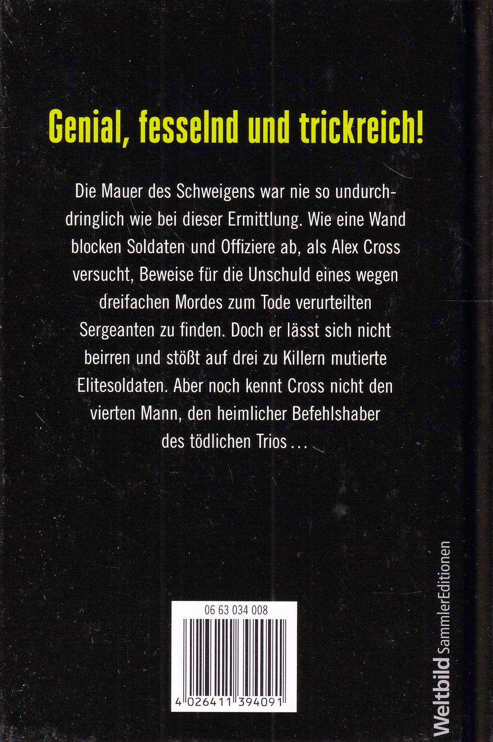 Die Mauer des Schweigens war nie so undurcdringlich wie bei dieser Ermittlung. Wie eine Wand blocken Soldaten und Offiziere ab, als Alex Cross versucht, Beweise für die Unschuld eines wegen dreifachen Mordes zum Tode verurteilten Sergeanten zu finden. Doch er lässt sich nicht beirren und stösst auf drei zu Killern mutierte Elitesoldaten. Aber noch kennt Cross nicht den vierten Mann, den heimlicher Befehlshaber des tödlichen Trios..
