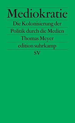 Mediokratie. Der Politologe von der Universität Dortmund verfällt jedoch in seiner ernüchternden Untersuchung über die Kolonisierung der Politik durch die Medien keineswegs in das beliebte Format der Medienschelte. Immer nüchtern und prägnant formuliert, verfolgt Meyer die rasante Verwandlung der Parteiendemokratie in eine Mediendemokratie, eine Entwicklung, an der die Politik nicht so unschuldig ist, wie sie gern der Öffentlichkeit gegenüber in Anspruch nimmt. Im Gegenteil, nach der Lektüre von Meyers Ausführungen über Mediokrität und Infantilisierung, über parasitäre Publizität und die Theatralisierung der Politik, begreift man, warum bestimmte Politiker ihre eigene mediale Inszenierung mit allen Kräften und Mitteln betreiben, zu Dauergästen in Talkshows avancieren, als Kandidaten an Wettsendungen teilnehmen und sich sogar von Big Brother in den Container sperren lassen. Die Medien sind aber nicht nur der Resonanzraum für die Beförderung persönlicher Karrieren und die unendliche Fortsetzung des Wahlkampfes. Viel einschneidender ist nach Meyer der Ersatz einer sachorientierten durch eine durch und durch medienorientierte Politik, deren Entscheidungen sich nicht mehr nach dem Bedarf an Klärung und Auseinandersetzung richten, sondern mediengerecht aufbereitet und notfalls korrigiert werden. Das Prinzip der Bürgerbeteiligung bleibt dabei ebenso auf der Strecke (wenn man mal von den Rundfunkgebühren absieht) wie die ursprüngliche Funktion der Parteien in der Demokratie. In der Mediokratie zählen statt Parteien nur noch Personen, Parteiprogramme werden durch Inszenierungen ersetzt, und was dem Zuschauer als heftige Auseinandersetzung aufgetischt wird, entpuppt sich als kalkulierte Scheindebatte. Wahrlich trübe Aussichten, wie Meyer zugibt, besonders weil der Einfluss des Mediensystems auf die politische Kultur weit grösser ist als umgekehrt, doch kein Grund, in Zynismus oder Politikmüdigkeit zu verfallen. Meyers Buch schliesst daher mit einem Ausblick auf die Chancen der Mediendemokratie, die sich vor der Herrschaft der Medien und mediokrer Politik mit der Aufwertung der Angemessenheit als Richtwert politischer Inszenierungen zur Wehr setzt. Bis diese Überzeugung sich allerdings auch bei den Christiansen-Gästen durchgesetzt hat, gehört dieses Buch neben jeden Fernseher. --Peter Schneck Über den Autor und weitere Mitwirkende