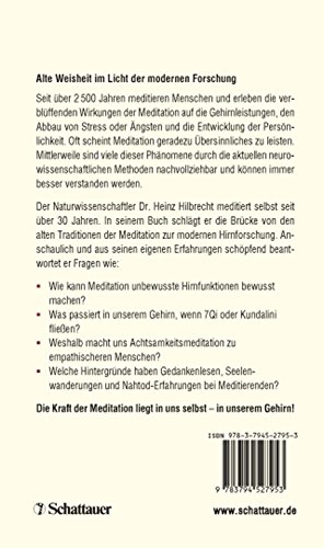 Der Naturwissenschaftler Dr. Heinz Hilbrecht meditiert selbst seit über 30 Jahren. In seinem Buch schlägt er die Brücke von den alten Traditionen der Meditation zur modernen Hirnforschung. Anschaulich und aus seinen eigenen Erfahrungen schöpfend beantwortet er Fragen wie: