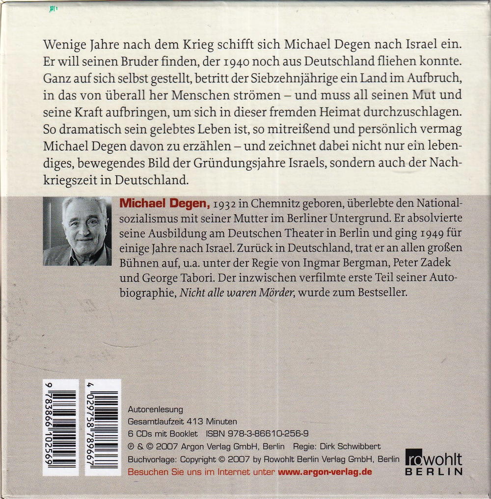 So dramatisch sein gelebtes Leben ist, so mitreissend und persönlich vermag Michael Degen davon zu erzählen – und zeichnet dabei nicht nur ein lebendiges, bewegendes Bild der Gründungsjahre Israels, sondern auch der Nachkriegszeit in Deutschland.