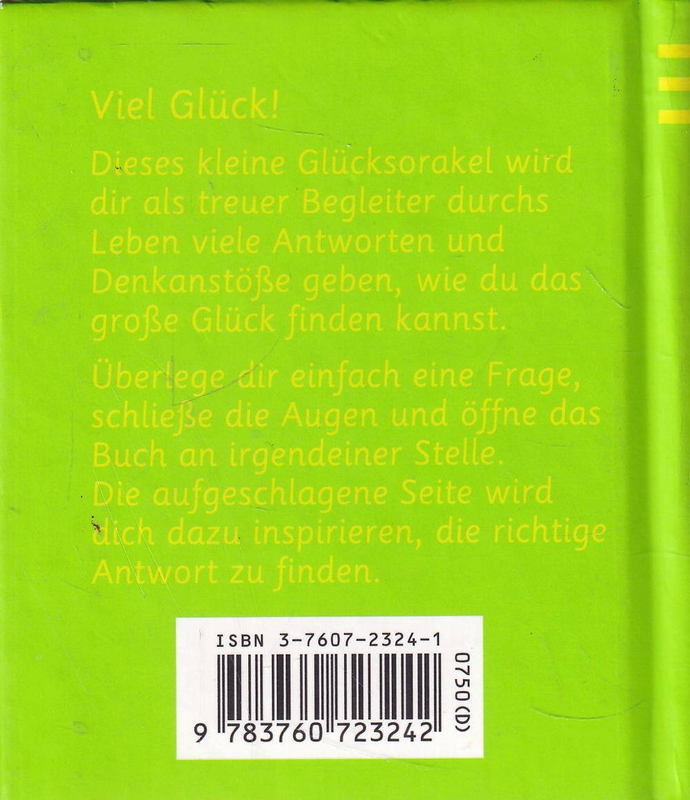 Dieses kleine Glücksorakel wird dir als treuer Begleiter durchs Leben viele Antworten und Denkanstösse geben, wie du das grosse Glück finden kannst. Überlege dir einfach eine Frage, schliesse die Augen und öffne das Buch an irgendeiner Stelle. Die aufgeschlagene Seite wird dich dazu inspirieren, die richtige Antwort zu finden.