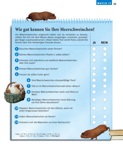 Die Reihe "Aus Liebe zum Tier" konzentriert sich ganz auf das Wohlbefinden des Tieres und zeigt, wie man von Anfang an eine harmonische Beziehung aufbaut und dafür sorgt, dass es ihm so richtig gut geht - auch im Alter. Mit vielen Tips für intensive Beschäftigung, Spiel und Spass sowie Partner- und Wohlfühl-Test zum Ankreuzen. Auf Ausklappseiten: der Fitness-Parcours fürs Meerschweinchen.