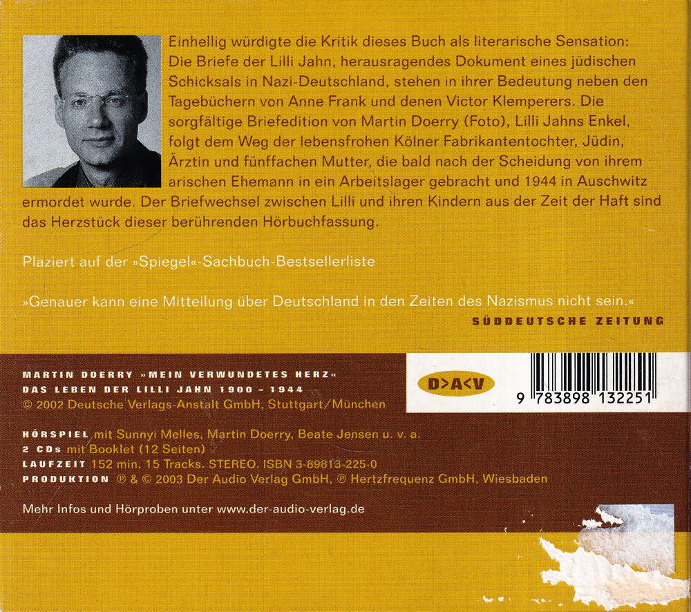 Die Überlieferung der Briefe grenzt an ein Wunder: Es gelang Lilli Jahn, sie vor der Deportation nach Auschwitz einer Aufseherin anzuvertrauen, die sie dann den Kindern übergab. 1998, als der Sohn von Lilli, Gerhard Jahn, Bundesjustizminister im Kabinett Willy Brandts, starb, fand die Familie den kompletten Briefwechsel in seinem Nachlass. Der Enkel Martin Doerry hat eine Auswahl getroffen und die Briefe mit zeitgeschichtlichen Hintergrundinformationen zu einem grossen Lebensporträt zusammengestellt.