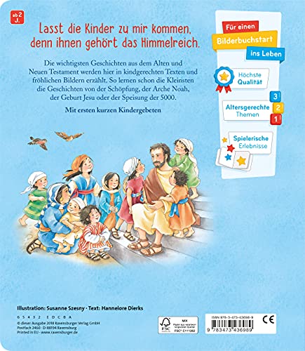 Die erste Bibel für die Kleinen. Geschichten aus dem alten und neuen Testament sind kindgerecht nacherzählt und mit fröhlichen Bildern versehen. Von der Arche Noah über David und Goliat bis zu Geschichten aus dem Leben Jesu. Das ideale Taufgeschenk.