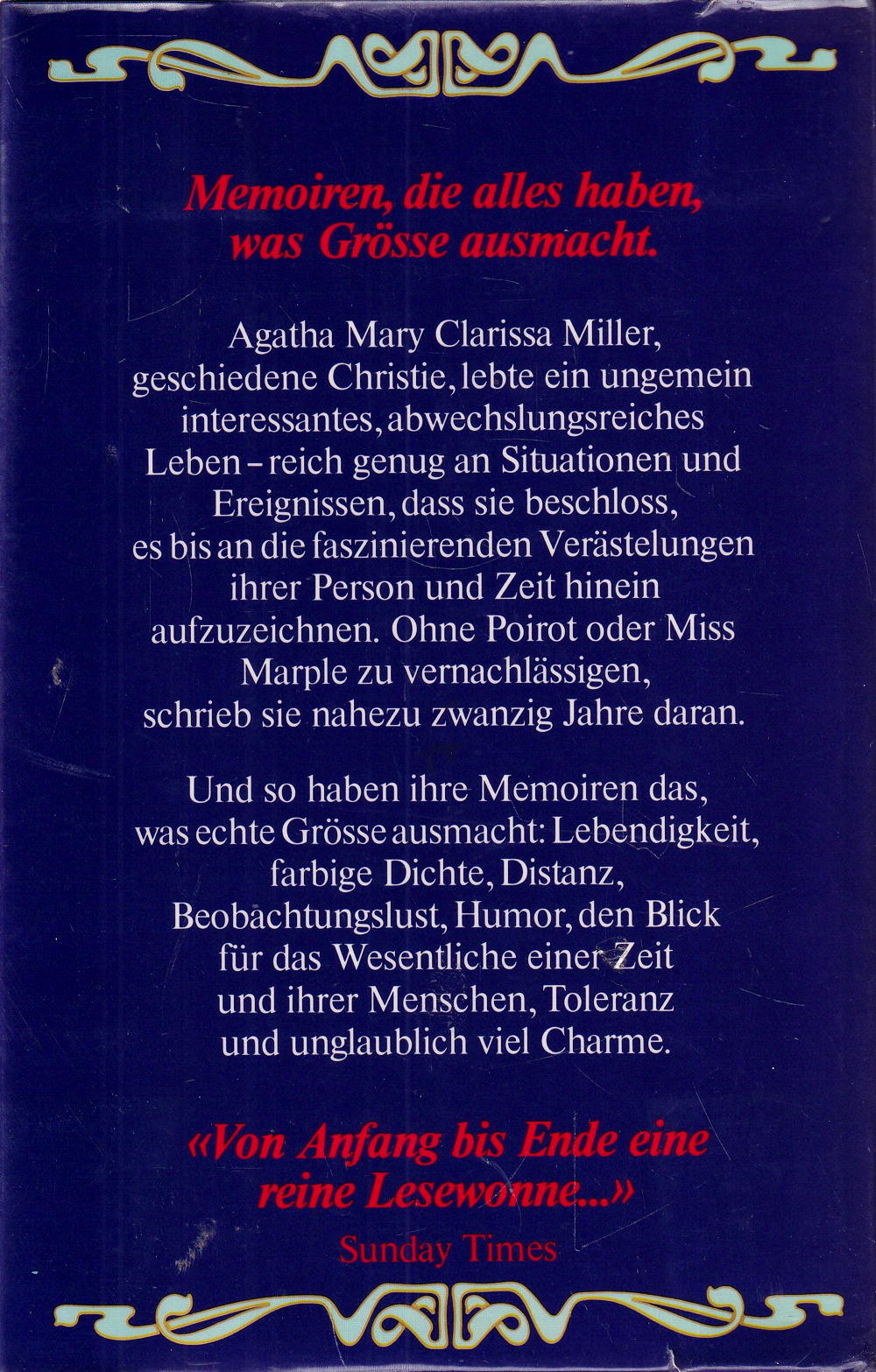 Agatha Mary Clarissa Miller, geschiedene Christie, lebte ein ungemein interessantes, abwechslungsreiches Leben - reich genug an Situationen und Ereignissen, dass sie beschloss, es bis an die faszinierenden Verästelungen ihrer Person und Zeit hinein aufzuzeichnen. Ohne Poirot oder Miss Marple zu vernachlässigen, schrieb sie nahezu zwanzig Jahre daran.