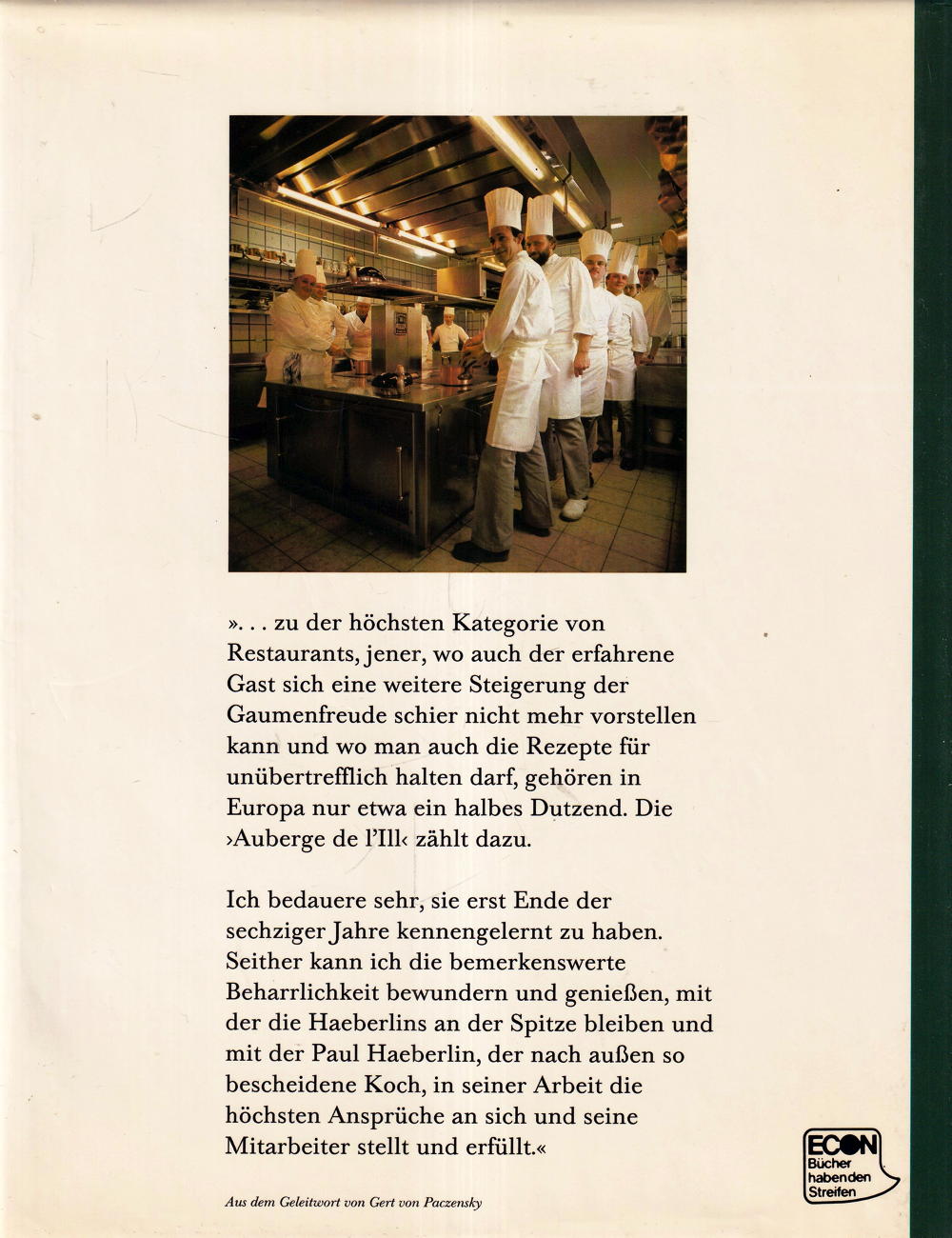 »... Zu der höchsten Kategorie von Restaurants, jener, wo auch der erfahrene Gast sich eine weitere Steigerung der Gaumenfreude schier nicht mehr vorstellen kann und wo man auch die Rezepte für unübertrefflich halten darf, gehören in Europa nur etwa ein halbes Dutzend. Die »Auberge de l'Illk zählt dazu.