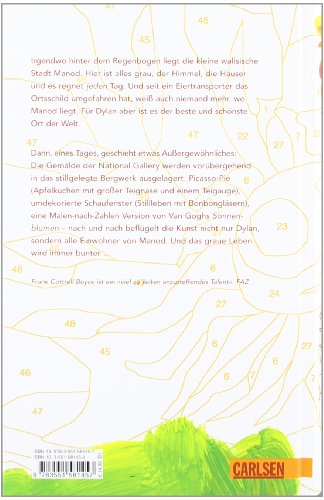 In der kleinen walisischen Stadt Manod ist alles grau: der Himmel, die Häuser und es regnet jeden Tag. Für Dylan aber ist Manod der beste Ort der Welt. Mit einem Vater, der einfach einen Kessel heisses Wasser in die Irische See kippt, wenn es zu kalt zum Baden ist. Und dann, eines Tages, bringt ein wahrhaft aussergewöhnliches Ereignis Farbe in den grauen Ort: Die Kunstwerke der Londoner National Gallery werden vorübergehend in das stillgelegte Bergwerk ausgelagert! Nach und nach beflügelt die Kunst die Einwohner von Manod und dazu tragen nicht nur Van Goghs"Sonnenblumen"bei...