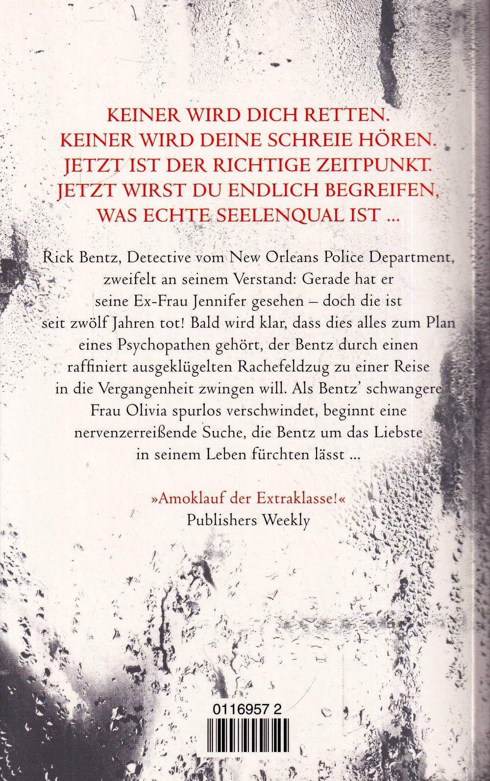 Rick Bentz, Detective vom New Orleans Police Department, zweifelt an seinem Verstand: Gerade hat er seine Exfrau Jennifer gesehen – doch die ist seit 12 Jahren tot! Bald wird klar, dass dies alles zum Plan eines Psychopathen gehört, der Bentz durch einen raffiniert ausgeklügelten Rachefeldzug zu einer Reise in die Vergangenheit zwingen will. Als Bentz` schwangere Frau Olivia spurlos verschwindet, beginnt eine nervenzerreissende Suche, die Bentz um das Liebste in seinem Leben fürchten lässt …
