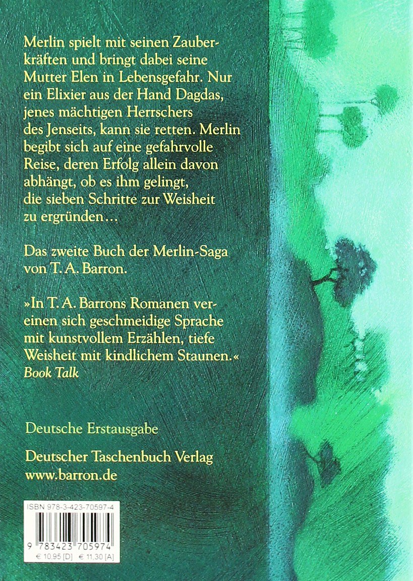 Auf Fincayra, der fantastischen Insel irgendwo zwischen den Welten, fühlt Merlin seine magischen Kräfte wachsen. Das macht ihn stolz, aber auch hochmütig - und einsam. Schliesslich wagt er den Zauber, seine Mutter zu sich auf die Insel zu holen. Doch kaum angekommen, wird sie von Merlins ärgstem Feind vergiftet. Retten kann sie jetzt nur noch Dagdas lebensspendendes Elexier. Merlin weiss, dass er Dagdas Heimat nur betreten darf, wenn er zuvor die sieben Schritte zur Weisheit ergründet hat. Vor ihm liegt eine weite und gefährliche Reise durch das ganze Land - und die Zeit drängt. Dennoch will er wagen, was einst seinem Grossvater, Fincayras grösstem Weisen, das Leben gekostet hatte...