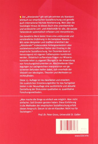 Der „Atteslander“ gilt seit Jahrzehnten als Standardlehrbuch zur empirischen Sozialforschung und geniesst auch international höchste Anerkennung. Weit über die Soziologie hinaus ist das Buch eine unentbehrliche und verlässliche Lern- und Arbeitshilfe für alle, die soziale Tatbestände systematisch erfassen und interpretieren.