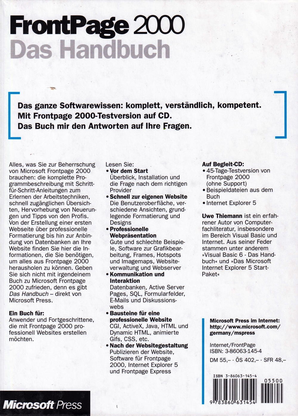 Das ganze Softwarewissen: komplett, verständlich, kompetent. Mit Frontpage 2000-Testversion auf CD. Das Buch mir den Antworten auf Ihre Fragen.