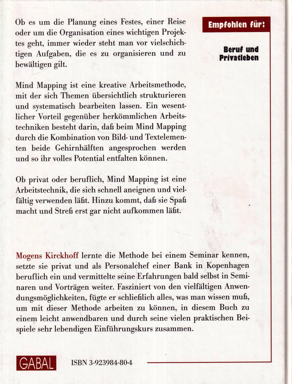 Ob es um die Planung eines Festes, einer Reise oder um die Organisation eines wichtigen Projektes geht, immer wieder steht man vor vielschichtigen Aufgaben, diees zu organisieren und zu bewältigen gilt. Mind Mapping ist eine kreative Arbeitsmethode, mit der sich Themen übersichtlich sturktieren und systematisch bearbeiten lassen. Ein wesentlicher Vorteil gegenüber herkömmlicher Arbeitstechniken besteht darin, dass beim Mind Mapping durch die Kombination von Bild- und Textelemten beide Gehirnhälften angesprochen werden und so ihr volles Potential entfalten können. Ob privat oder beruflich, Mind Mapping ist eine Arbeitstechnik, die sich schnell aneignen und vielfältig verwenden lässt. Hinzu kommt, dass sie Spass macht und Stress erst gar nicht aufkommen lässt.