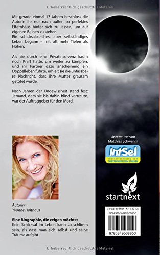 Mit gerade einmal 17 Jahren beschloss die Autorin ihr nur nach aussen so perfektes Elternhaus hinter sich zu lassen, um auf eigenen Beinen zu stehen. Ein schicksalsreiches, aber selbständiges Leben begann – mit oft mehr Tiefen als Höhen. Als sie durch eine Privatinsolvenz kaum noch Kraft hatte, um weiter zu kämpfen, und ihr Partner dazu anscheinend ein Doppelleben führte, erhielt sie die unfassbare Nachricht, dass ihre Mutter grausam getötet wurde. Nach Jahren der Ungewissheit stand fest: Jemand, dem sie bis dahin blind vertraute, war der Auftraggeber für den Mord. Eine Biographie, die zeigen möchte: Kein Schicksal im Leben kann so schlimm sein, als dass man sich selbst und seine Träume aufgibt.