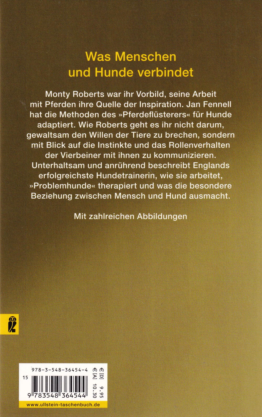 Monty Roberts war ihr Vorbild, seine Arbeit mit Pferden ihre Quelle der Inspiration. Jan Fennell hat die Methoden des »Pferdeflüsterers« für Hunde adaptiert. Wie Roberts geht es ihr nicht darum, gewaltsam den Willen der Tiere zu brechen, sondern mit Blick auf die Instinkte und das Rollenverhalten der Vierbeiner mit ihnen zu kommunizieren.