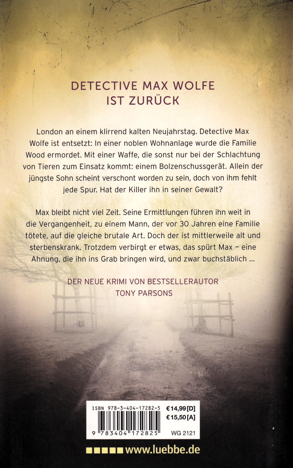 London an einem klirrend kalten Neujahrstag. Detective Max Wolfe ist entsetzt: In einer noblen Wohnanlage wurde die Familie Wood ermordet. Mit einer Waffe, die sonst nur bei der Schlachtung von Tieren zum Einsatz kommt: einem Bolzenschussgerät. Allein der jüngste Sohn scheint verschont worden zu sein, doch von ihm fehlt jede Spur. Hat der Killer ihn in seiner Gewalt?