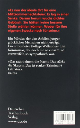 Drei Jugendliche werden ermordet; auch ein Polizist muss sterben... Wallanders achter Fall Es sollte ein harmloses Rollenspiel werden, am 21. Juni 1996, ein kleines Verkleidungsritual in der mythenumrankten Mittsommernacht. Doch Wanderer schaudern, als sie Wochen später in einem Naturschutzgebiet auf die drei Jugendlichen stossen, deren leblose Körper noch mit Miedern, Hemdkrausen und Perücken herausgeputzt sind. Bald ist es grausige Gewissheit: Sie wurden Opfer eines Verbrechens.