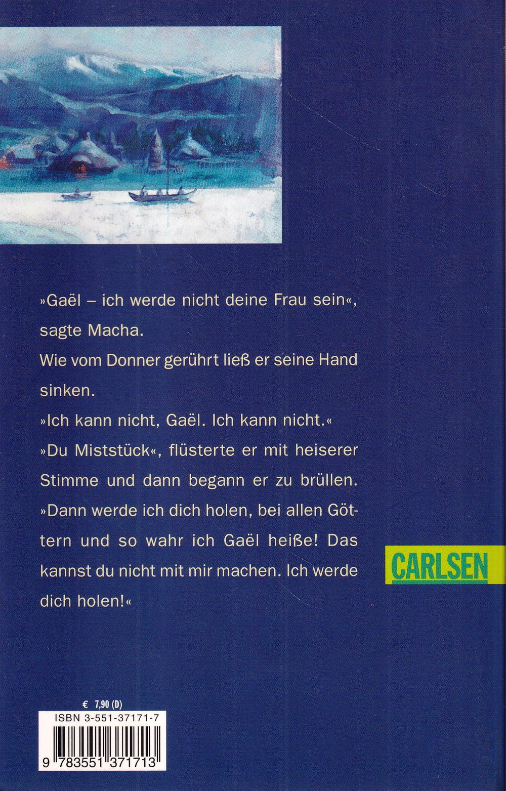 »Gaël – ich werde nicht deine Frau sein«, sagte Macha. Wie vom Donner gerührt liess er seine Hand sinken. »Ich kann nicht, Gaël. Ich kann nicht. « »Du Miststück«, flüsterte er mit heiserer Stimme und dann begann er zu brüllen. »Dann werde ich dich holen, bei allen Göttern und so wahr ich Gaël heisse! Das kannst du nicht mit mir machen. Ich werde dich holen! «