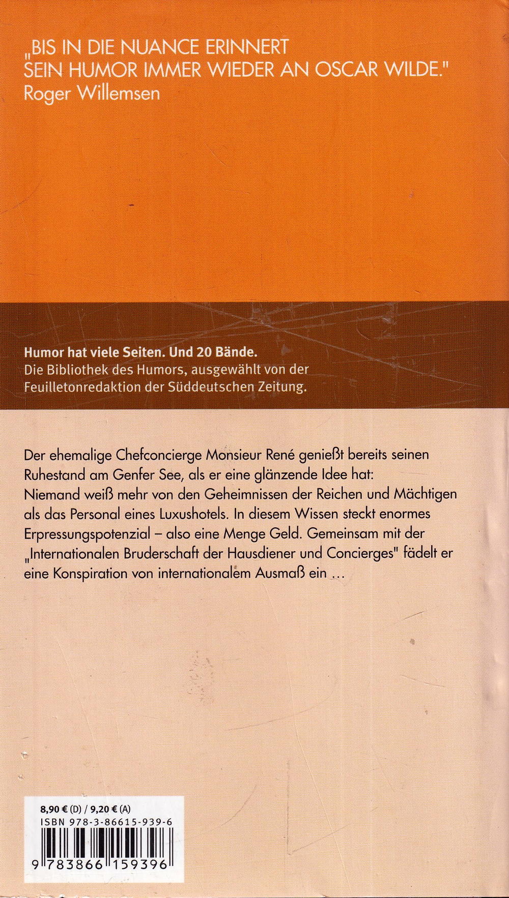 Das Personal eines Luxushotels erfährt täglich von den Geheimnissen und schmutzigen Geschäften der Reichen und Mächtigen. Dieses geheime Wissen der Kellner, Zimmermädchen und Pagen will der ehemalige Chef-Concierge Monsieur René nutzen und zu Geld machen. Dabei verstrickt er sich allerdings immer tiefer in eine Konspiration von internationalem Ausmass. Ein rabenschwarzer, komischer und tiefsinniger Roman mit einem liebenswert-skurrilen Helden vom Altmeister der britischen, weltmännischen Ironie.
