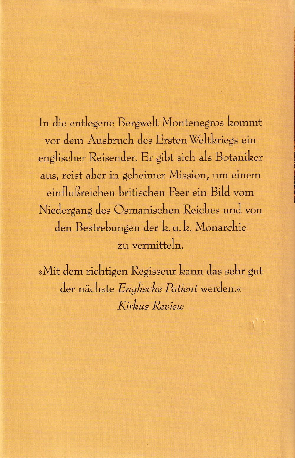 In die entlegene Bergwelt Montenegros kommt vor dem Ausbruch des Ersten Weltkriegs ein englischer Reisender. Er gibt sich als Botaniker aus, reist aber in geheimer Mission, um einem einflussreichen britischen Peer ein Bild vom Niedergang des Osmanischen Reiches und von den Bestrebungen der k. U. K. Monarchie zu vermitteln.