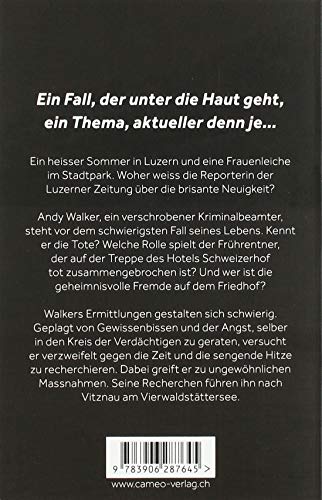 Ein heisser Sommer in Luzern und eine Frauenleiche im Stadtpark. Woher weiss die Reporterin der Luzerner Zeitung über die brisante Neuigkeit? Andy Walker, ein verschrobener Kriminalbeamter, steht vor dem schwierigsten Fall seines Lebens. Kennt er die Tote? Welche Rolle spielt der Frührentner, der auf der Treppe des Hotels Schweizerhof tot zusammengebrochen ist? Und wer ist die geheimnisvolle Fremde auf dem Friedhof? Walkers Ermittlungen gestalten sich schwierig. Geplagt von Gewissensbissen und der Angst, selber in den Kreis der Verdächtigen zu geraten, versucht er verzweifelt gegen die Zeit und die sengende Hitze zu recherchieren. Dabei greift er zu ungewöhnlichen Massnahmen. Seine Recherchen führen ihn nach Vitznau am Vierwaldstättersee...