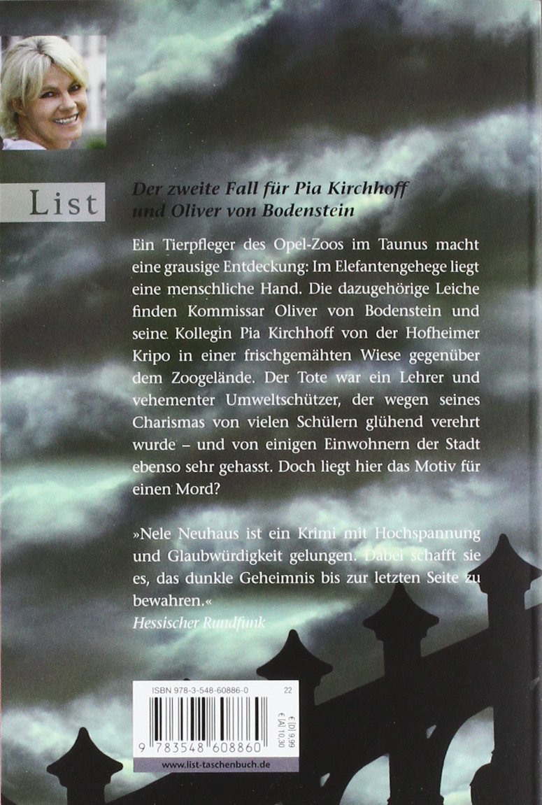 Der zweite Fall für Pia Kirchhoff und Oliver von Bodenstein Ein Tierpfleger des Opel-Zoos im Taunus macht eine grausige Entdeckung: im Elefantengehege liegt eine menschliche Hand. Die dazu gehörige Leiche finden Kommissar Oliver von Bodenstein und seine Kollegin Pia Kirchhoff von der Hofheimer Kripo in einer frisch gemähten Wiese gegenüber dem Zoogelände. Der Tote war ein Lehrer und vehementer Umweltschützer, der wegen seines Charismas von vielen Schülern glühend verehrt wurde - und von einigen Einwohnern der Stadt ebenso sehr gehasst. Doch liegt hier das Motiv für einen Mord?