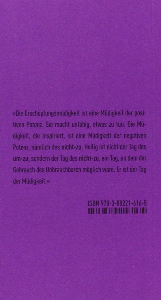 Derzeit vollzieht sich unbemerkt ein Paradigmenwechsel. Die Gesellschaft der Negativität weicht einer Gesellschaft, die von einem Übermass an Positivität beherrscht ist. Ausgehend von diesem Paradigmenwechsel zeichnet Han die pathologische Landschaft der heutigen Gesellschaft, zu der neuronale Erkrankungen wie Depression, Aufmerksamkeitsdefizitsyndrom, Borderline oder Burnout gehören. Sie sind keine Infektionen, sondern Infarkte, die nicht durch die Negativität des immunologisch Anderen, sondern durch ein Übermass an Positivität bedingt sind. So entziehen sie sich jeder immunologischen Technik der Prophylaxe und Abwehr. Hans Analyse mündet am Ende in die Vision einer Gesellschaft, die er in beabsichtigter Ambivalenz 'Müdigkeitsgesellschaft' nennt.