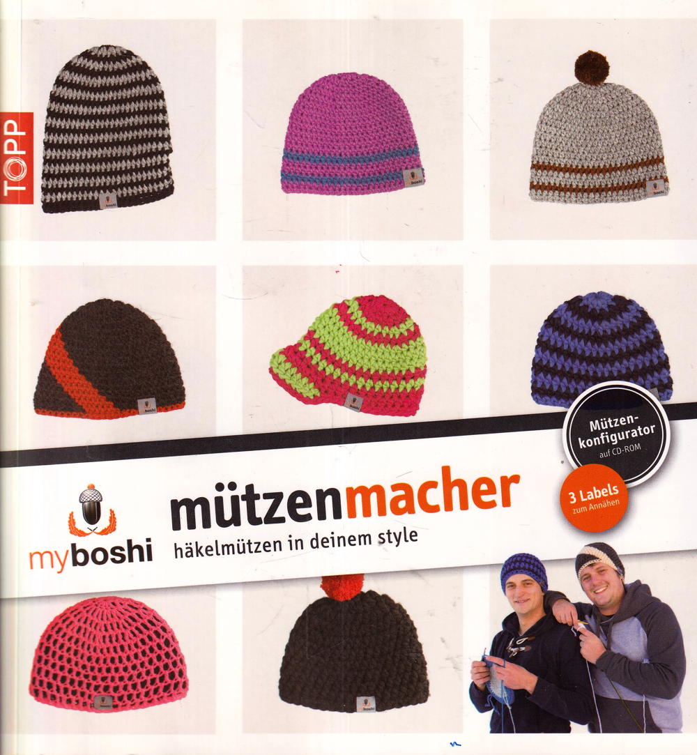 myboshi - mützenmacher. häkelmützen in deinem style. Kultige Mützen häkeln mit dem prominenten Autoren-Duo - bekannt aus Fernsehen und Presse. Dank der dicken Garne sind die 'boshis' schnell gehäkelt. Mit Konfigurator für Bilder und Anleitungen auf CD-ROM - über 6 Millionen verschiedene Kombinationsmöglichkeiten! Plus 3 Wäsche-Labels aus Stoff zum Annähen an die Mützen. 96 Seiten, 21,7 x 23 cm, Softcover, 3 beigelegte Wäsche-Labels, mit CD-ROM