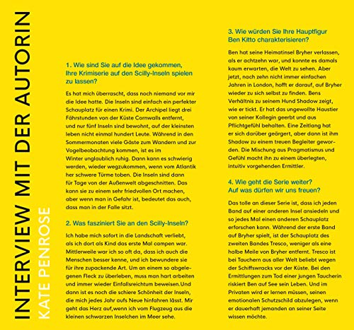 Kate Penrose kennt die Scilly-Inseln vor der Küste Cornwalls wie ihre Westentasche. Seit Kindertagen verbringt sie fast jeden Sommer dort und ist jedes Mal aufs Neue fasziniert von dem atemberaubenden Naturparadies. Die Idee für eine Krimiserie mit diesem einzigartigen Schauplatz kam ihr spontan bei einem Restaurantbesuch, und aus ein paar hastig hingekritzelten Stichworten auf der Speisekarte wurde einige Monate später der erste Insel-Krimi. Kate Penrose, die auch unter dem Namen Kate Rhodes schreibt, lebt mit ihrem Mann, dem Autor David Pescod, in Cambridge am Ufer des River Cam.