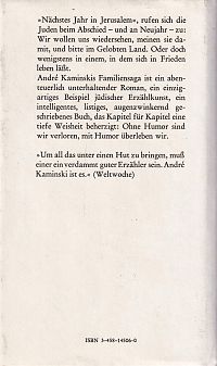 Nächstes Jahr in Jerusalem«, rufen sich die Juden beim Abschied - und an Neujahr - zu: Wir wollen uns wiedersehen, meinen sie damit, und bitte im Gelobten Land. Oder doch wenigstens in einem, in dem sich in Frieden leben läßt. André Kaminskis Familiensaga ist ein abenteuerlich unterhaltender Roman, ein einzigartiges Beispiel jüdischer Erzählkunst, eirn intelligentes, listiges, augenzwinkernd geschriebenes Buch, das Kapitel für Kapitel eine tiefe Weisheit beherzigt: Ohne Humor sind wir verloren, mit Humor überleben wir.