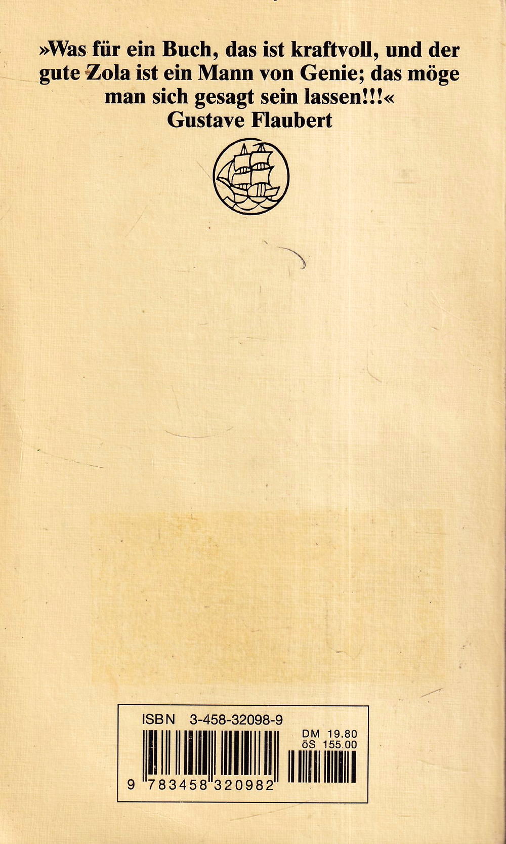Emile Zola (1840-1902) war Dockarbeiter, Verlagsangestellter und Journalist. 1898 protestierte er gegen die Verurteilung von A. Dreyfus, musste ins Exil nach England und kehrte nach einem Jahr amnestiert und gefeiert zurück. Sein Hauptwerk ist der 20bändige Romanzyklus 'Les Rougon-Macquart'.