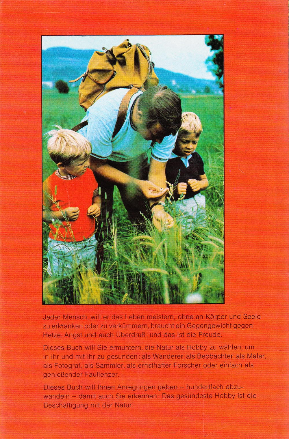 Dieses Buch will Sie ermuntern, die Natur als Hobby zu wählen, um in ihr und mit ihr zu gesunden; als Wanderer, als Beobachter, als Maler, als Fotograf, als Sammler, als ernsthafter Forscher oder einfach als geniessender Faullenzer.