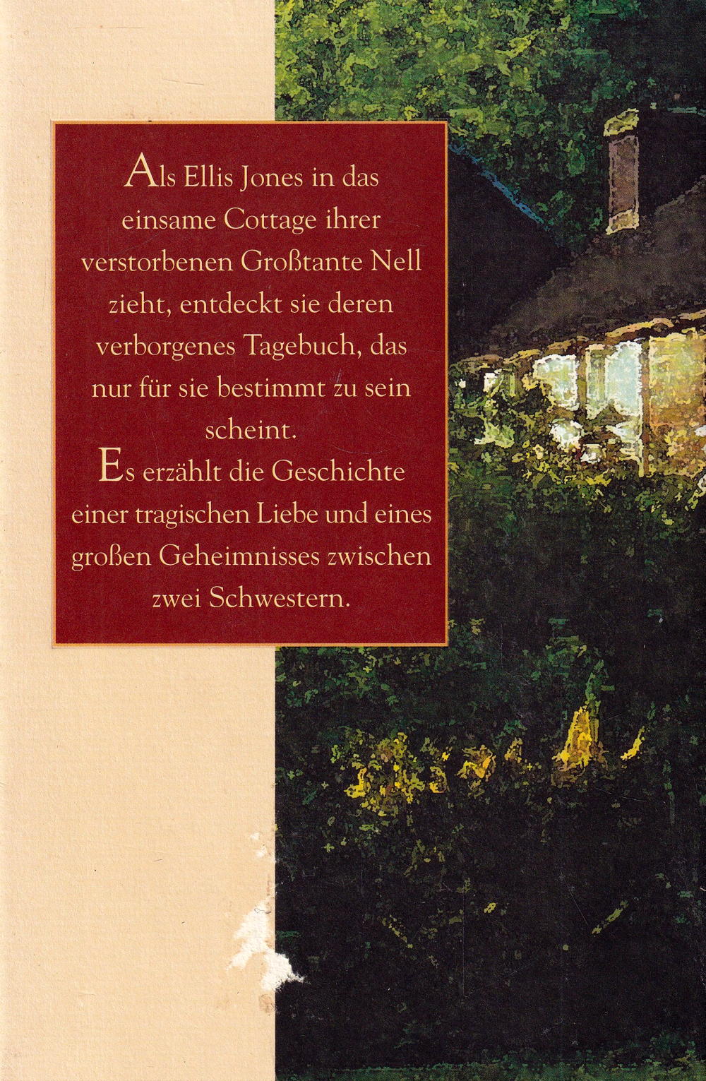 Schon nach der ersten Begegnung mit Laurence weiß Nell, dass sie die große Liebe ihres Lebens gefunden hat. Verstört flüchtet sie nach London, kehrt aber bald auf Drängen ihrer ahnungslosen Schwester nach Suffolk zurück. Doch das Wiedersehen mit ihrem Schwager hat weit reichende Folgen. Am Ende ist der geheime Garten des Malletts Cottage Nells einzige Zuflucht. Ergriffen von dem Schicksal ihrer Großtante stellt Ellis nun selbst Nachforschungen an. Ihre Recherchen enthüllen die wahre Geschichte ihrer Familie, und plötzlich weiß sie, dass es nur eine Möglichkeit für ihre eigene Zukunft geben kann.