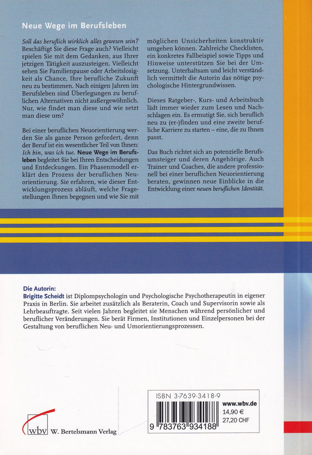 Soll das beruflich wirklich alles gewesen sein? Beschäftigt Sie diese Frage auch? Nach einigen Jahren im Berufsleben sind Überlegungen zu beruflichen Alternativen nicht aussergewöhnlich. Nur, wie findet man diese und wie setzt man diese um? Ein Phasenmodell erklärt den Prozess der beruflichen Neuorientierung. Sie erfahren wie dieser Entwicklungsprozess abläuft, welche Fragestellungen Ihnen begegnen und wie Sie mit möglichen Unsicherheiten umgehen können. Checklisten, ein konkretes Fallbeispiel sowie Tipps und Hinweise unterstützen Sie bei der Umsetzung. Unterhaltsam und leicht verständlich vermittelt die Autorin nötiges psychologisches Hintergrundwissen.