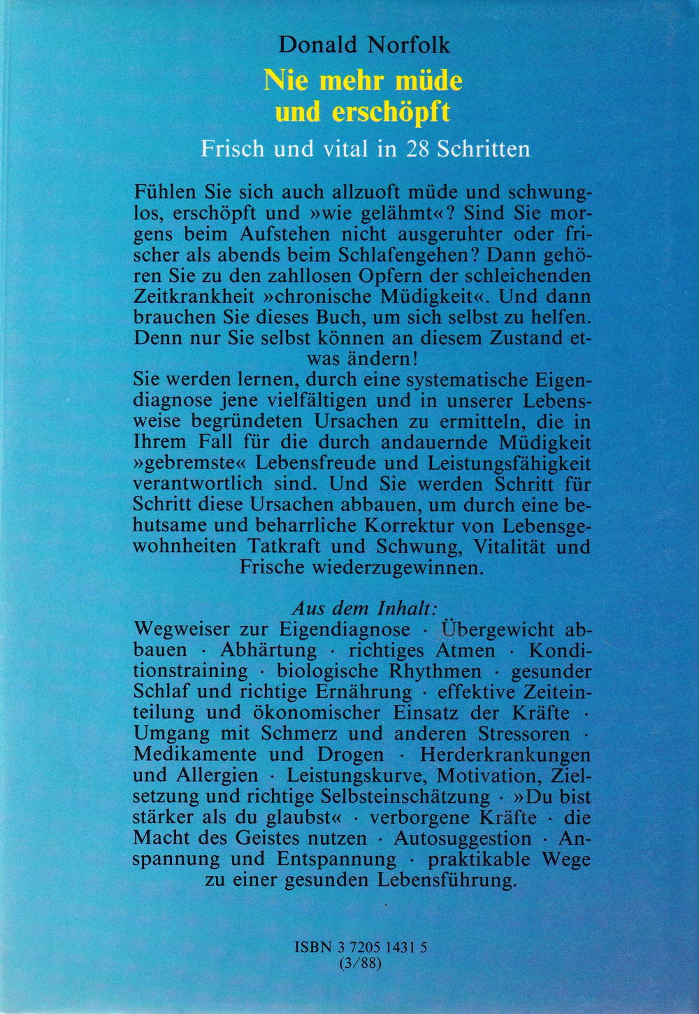 Fühlen Sie sich auch allzuoft müde und schwunglos, erschöpft und "wie gelähmt"? Sind Sie morgens beim Aufstehen nicht ausgeruhter oder frischer als abends beim Schlafengehen? Dann gehören Sie zu den zahllosen Opfern der schleichenden Zeitkrankheit "chronische Müdigkeit". Und dann brauchen Sie dieses Buch, um sich selbst zu helfen. Denn nur Sie selbst können an diesem Zustand etwas ändern!