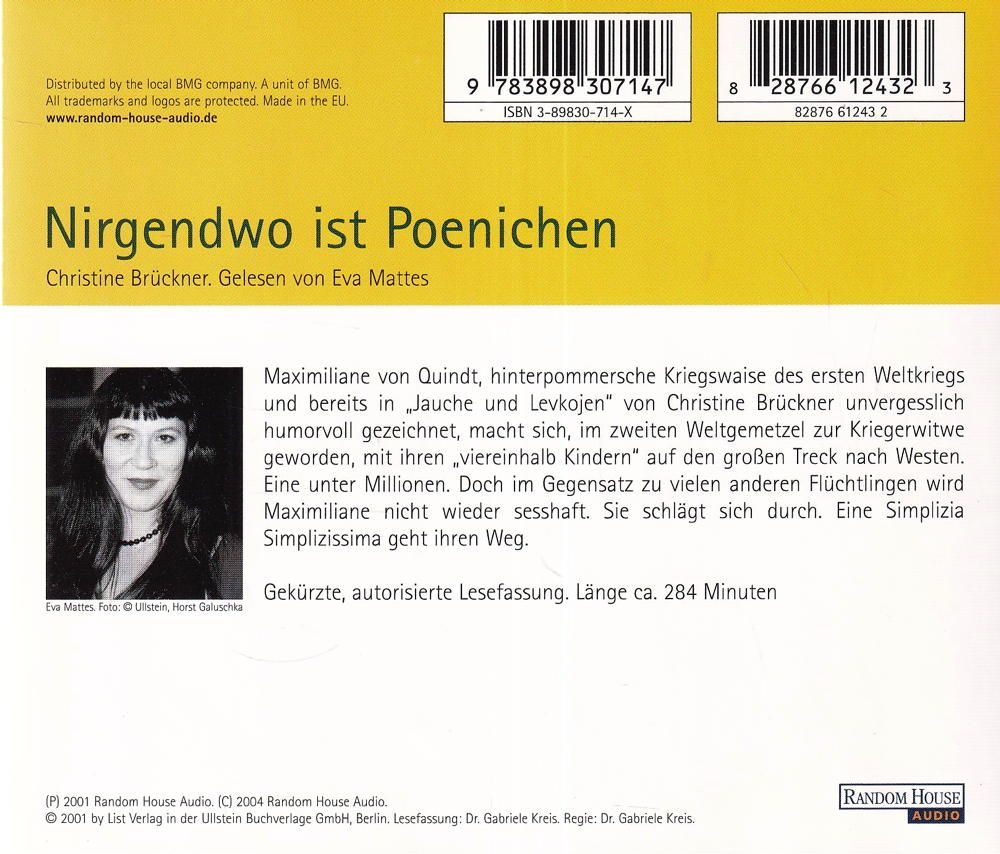 Maximiliane von Quindt, hinterpommersche Kriegswaise des ersten Weltkriegs und bereits in „Jauche und Levkojen" von Christine Brückner unvergesslich humorvoll gezeichnet, macht sich, im zweiten Weltgemetzel zur Kriegerwitwe geworden, mit ihren „viereinhalb Kindern" auf den grossen Treck nach Westen.