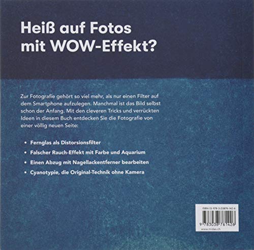 Fotos anzustellen. Hier finden Sie 70 clevere Ideen für alle - einfach bis aufwendig, simpel bis anspruchsvoll. Techniken für Spezialeffekte wie die Fotografie einer Wunderkerze beim Eintauchen in Wasser oder den Aufbau einer Minilandschaft werden ebenso vorgestellt wie innovative Möglichkeiten, Ihre fertigen Fotos zu bearbeiten, sie in Mosaike zu verwandeln oder Bilder in der Dunkelkammer mit Wasser zu verzerren. Die Ideen und Techniken werden anhand grossartiger Beispiele verständlich dargelegt und machen das Buch zur idealen Lektüre für alle, die mehr mit ihren Fotos anstellen wollen.