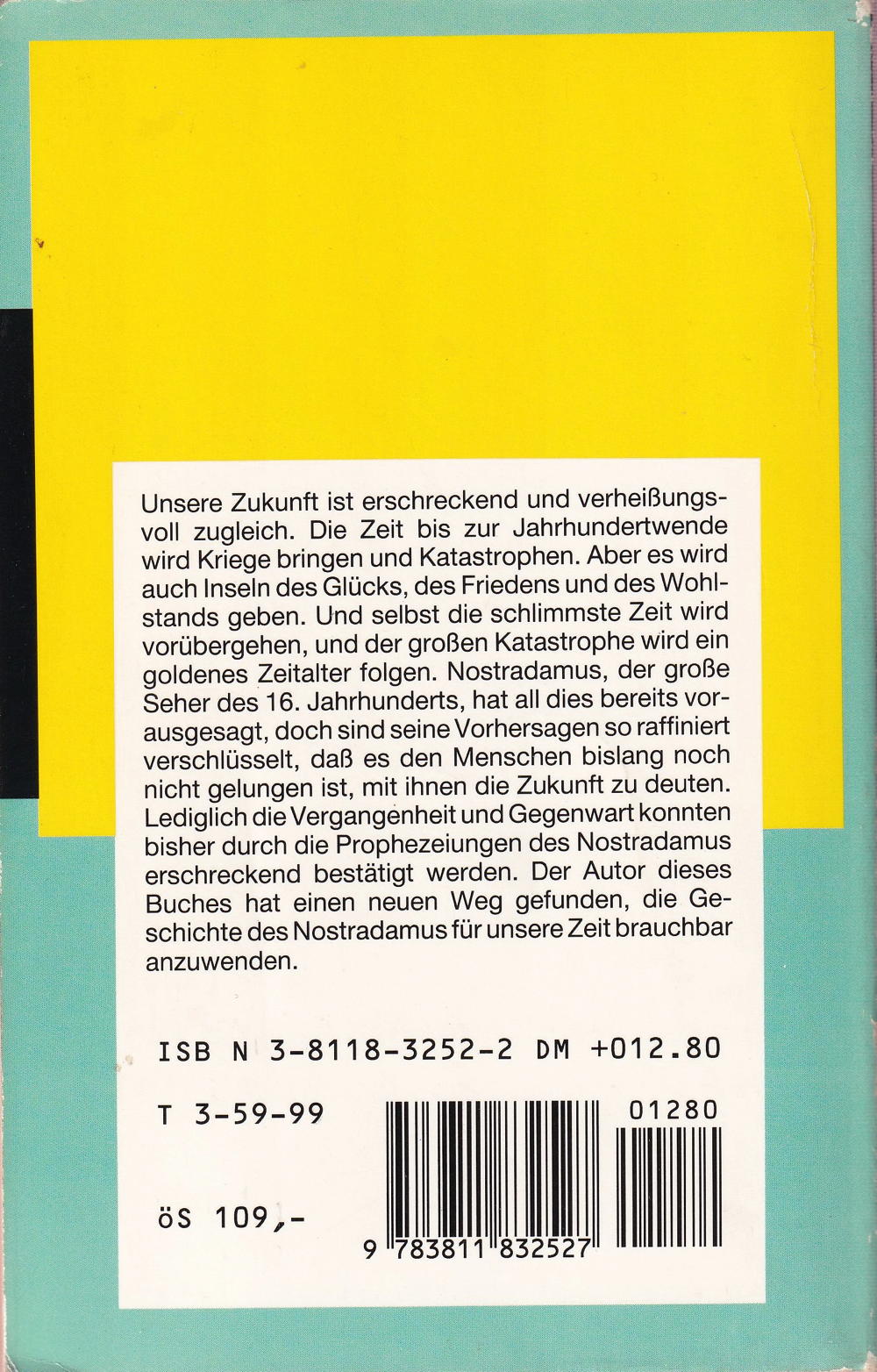 Unsere Zukunft ist erschreckend und verheissungsvoll zugleich. Die Zeit bis zur Jahrhundertwende wird Kriege bringen und Katastrophen. Aber es wird auch Inseln des Glücks, des Friedens und des Wohlstands geben. Und selbst die schlimmste Zeit wird vorübergehen, und der grossen Katastrophe wird ein goldenes Zeitalter folgen. Nostradamus, der grosse Seher des 16. Jahrhunderts, hat all dies bereits vorausgesagt, doch sind seine Vorhersagen so raffiniert verschlüsselt, dass es den Menschen bislang noch nicht gelungen ist, mit ihnen die Zukunft zu deuten Lediglich die Vergangenheit und Gegenwart konnten bisher durch die Prophezeiungen des Nostradamus erschreckend bestätigt werden. Der Autor dieses Buches hat einen neuen Weg gefunden, die Geschichte des Nostradamus für unsere Zeit brauchbar anzuwenden.